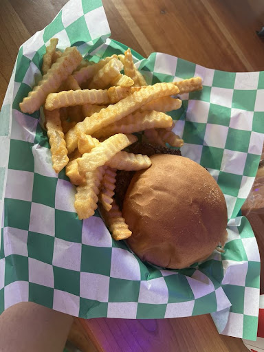 Both my parents and husband both ordered the special of the day: two West Virginia style hot dogs and chips. A WV hot dog comes with chili, slaw, mustard, and onions. I love regional variations on food! This one didn't disappoint; although my mom was at first reticent to try the chili/slaw combo, even she wound up loving it! Great quality dog as well. I ordered a burger with crinkle cut fries for myself. The burger was very large and I liked the bun it was served on. It had a chargrilled flavor which isn't my absolute favorite but I still enjoyed it overall. The fries were pretty standard. I wanted a sweet tea to drink but I didn't like theirs on first sip -- too much lemon. I dumped it out and got a Coke instead. Overall, pretty solid food!