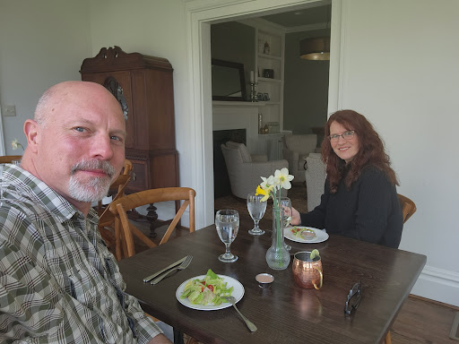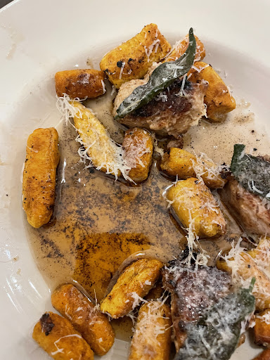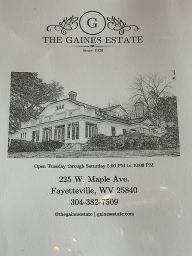 Read moreHuge disappointment. We wanted to have a nice dinner on our weekend trip and the Gaines estate appeared to be the place. We got a couple cocktails at the bar, not good. I’m not a sugar person but these were like plain diluted liquor. Staff is very friendly, but our server was unattentive. Appetizer sounded good but was not. Fried eggplant w ricotta, fig sauce, confit cherry tomatoes. The eggplant was crazy overbreaded. 3x as thick as the eggplant. Preparation not in line with dish flavors. The tomatoes and basil really throw it off. Salad was sad. A few small cucumber pieces, couple halved cherry tomatoes and greens. That’s it. And very small. No bread was served at all. Entree I ordered pork loin w pumpkin gnocchi. No seasoning whatsoever. Actually the most bland entree I’ve ever eaten. For real. Gnocchi was wrinkled up dry, no flavor. And the butter that topped the dish was the same butter used to fry the loin I think because black bits were floating in the bottom of the dish. It wasn’t a sauce made from the butter or a seasoned brown butter. Had to ask for a salt shaker. Asparagus as a side was over charred and only 4 pieces.