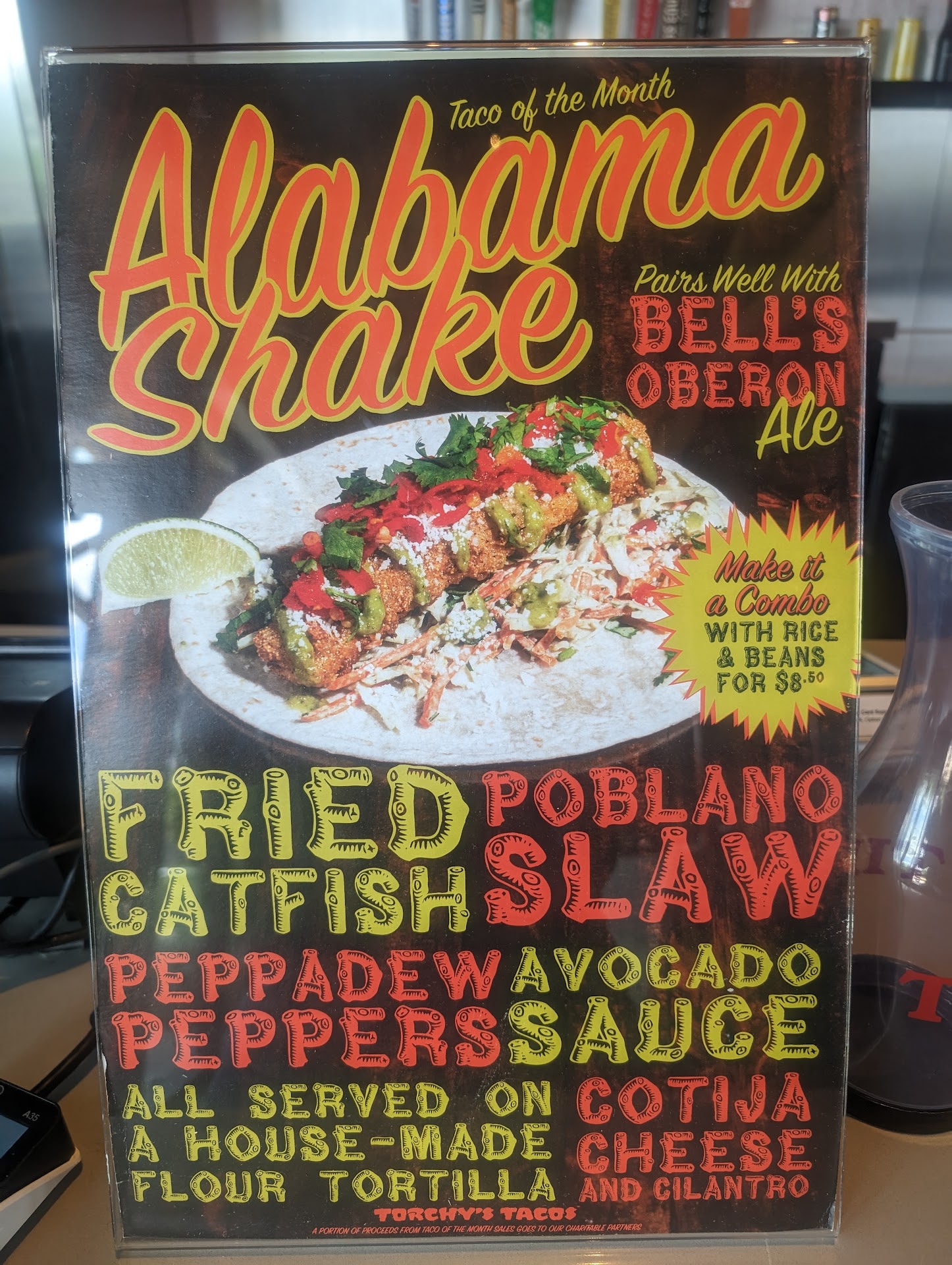 My wife and I were invited here to meet friends for lunch and we spent some time going over their menu to find items that didn't have cilantro in order that she could eat something there. She ended up ordering the Hillbilly Nachos and a taco with no cilantro and a change of sauce to one that didn't have cilantro.