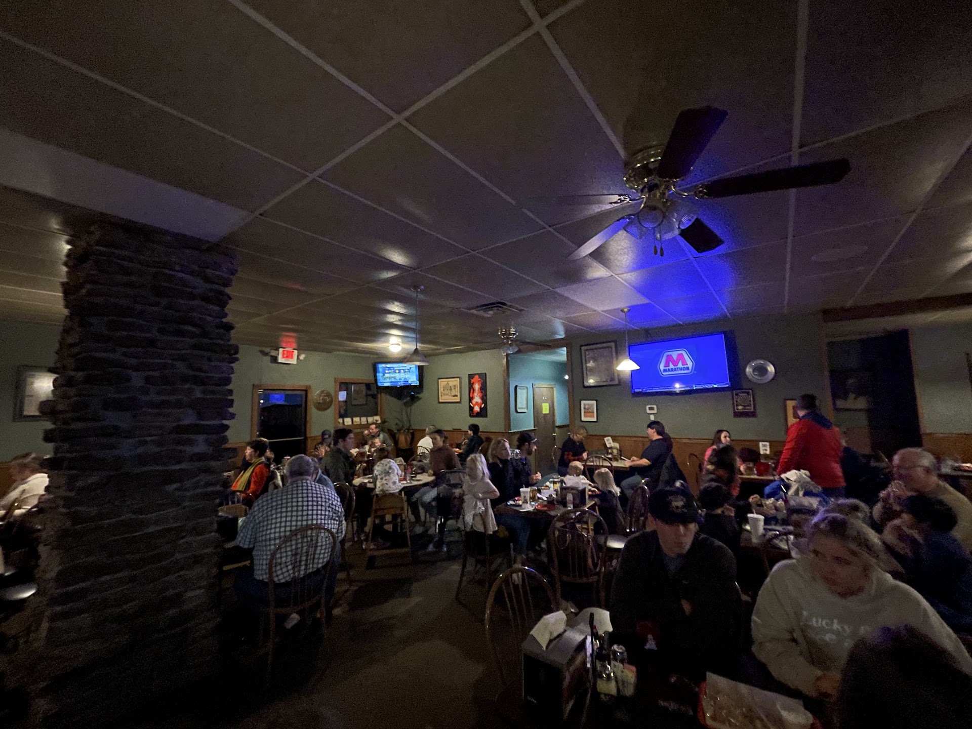 The atmosphere was pure chaos. Rock music blared from the kitchen while easy jazz played from the ceiling speakersâit clashed hard. TVs were on every wall, but I almost think the place would be better without them. It was just too much happening at once.