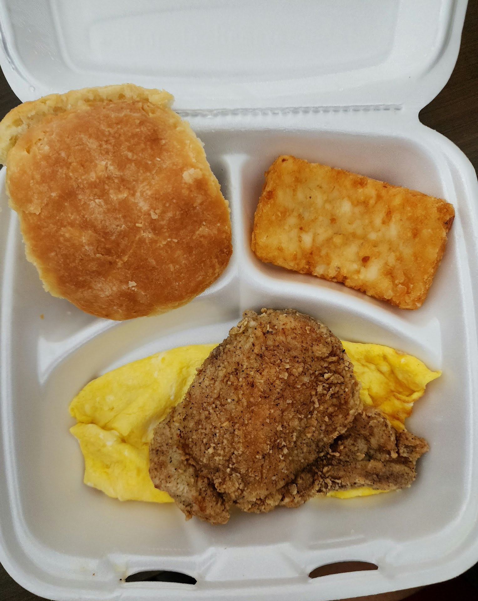 Read moreThis used to be a great breakfast option back when I worked in Fayetteville. However it seems things have changed over the years. Ordered a bacon egg and cheese biscuit with grits, and orange juice it was 12.37 contemplated driving off but I was crunched for time so decided to give it a shot. The first red flag was when she handed me my cup the orange juice had ICE in it, not sure who thought that was a good idea but it’s NOT! Proceeded to open my “biscuit” and immediately noticed it looked more like a hamburger bun than a biscuit, the eggs appeared to be egg substitute or something definitely not egg, and it had cheap processed cheese (this biscuit was over 7.00) went ahead and ate it since I was already indebted. The biscuit was dry, egg whatever was gross, the bacon was good! Grits were average required a few backs of salt and pepper along with both butters they gave me. The orange juice wasn’t consumable guessing just the cheapest thing they could find to charge the most for. Unfortunately this will be my last visit here unless I catch wind of some...