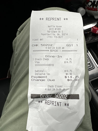 Read moreIf you’re a woman and even mildly attractive—do NOT dine here!!!!!! Harassment by employee & the waitress was rude and unfriendly. Visited on a evening to enjoy dinner with my son. We were the only customers in the building. Told the waitress I never been to Waffle House before and she gave me a dead stare and didn’t care. Also asked about options and she didn’t care to help. The cook harassed me and made me extremely uncomfortable by the way he was sexualizing me with his body language. He tried to speak with me the ENTIRE time. Kept asking me questions and being very annoying to say the least. Even asked where I’m from and referenced my curviness by saying I must eat my cornbread and greens. I could not even enjoy my dinner with my son. He even pulled up a chair next to me but then left. I didn’t get the extra side of bacon that I paid for nor the cheese in my grits. The waitress watched me as I tipped which made me feel compelled to give her a 20% tip. When I left, he walked up to the window and used his phone to either take photos of me or show someone me on FaceTime. The whole experience was dehumanizing and made me so uncomfortable that I WONT be returning to...