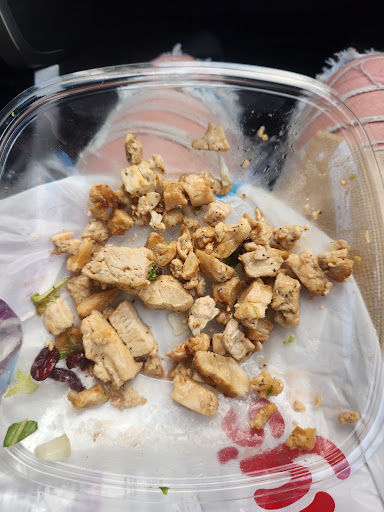 Read moreThis is not my first visit to this location but it will be my last. I placed a mobile order on the app for carryout for a salad and one burger. I waited over 20 minutes for my food to actually be ready. At the 15 minute mark, I walked up to the counter and after the front counter girl had her back to the front and didn't turn around for a couple minutes, barely speaking to me when she did and asked for the status of my order telling the time I placed it. She disappeared without a word, and then came back returning to her back facing me restarting a task before turning around again and saying they were working on it. Five minutes later, she brings up the bags, says the name for the order, barely loud enough to hear from the lobby and walks away immediately without another word. After getting in the car and opening the food 5 minutes away, I found that the chicken on my salad was hard, dry, cold and inedible, I couldn't impale a single piece with a fork. Coming from a previous manager in food service, this is absolutely an unacceptable way for staff to behave and for food to be presented...