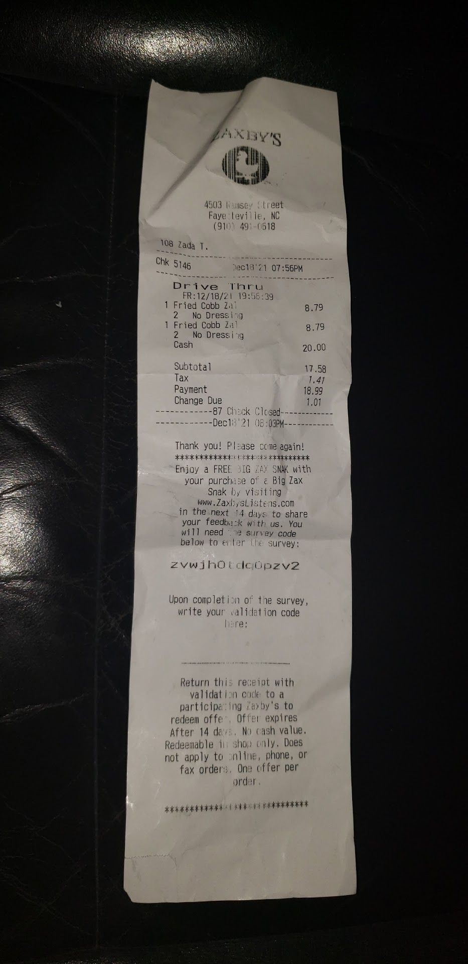 My family and I have eaten at zaxbys many times. Within the past two months each time we have gone to zaxbys on Ramsey street there has been some issue. I’ll share all three