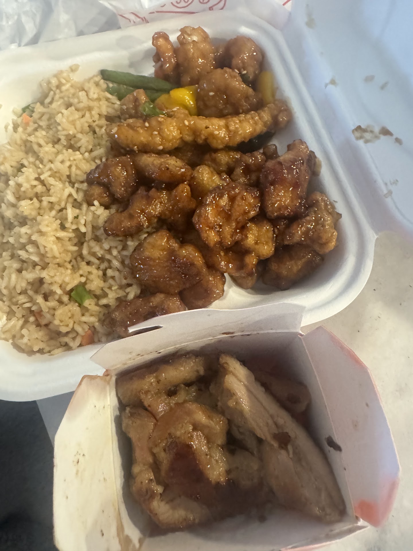 I went to panda and I order on the drive true 4 plates 3 minutes later the lady on the window told me to moving forward because i holding the line and someone is going to bring the food to my truck I was waiting about 10 minutes then I walk in and I see 3 plates already served then i look on the teriyaki place and that was empty I think ok Iâll be waiting about 15 minutes maybe is ready about 10 minutes after I ask the girl excĂșseme those 3 plates is from my order right and she say yes we just waiting for the teriyaki chicken and I told her why you donât tell me when I order is going to be about 15 to 20 minutes wait for the teriyaki so that way is my decision if I want to wait now those other three plates is Ben there for about 15 minutes by the time the teriyaki is ready those plates is going to be cold you should wait to do all the plates on the same time or you should tell about the waiting time for the teriyaki you just say to pull forward because I was holding the line and you guys bring the food to the truck just give me orange chicken and she said sorry I can give you a drink or two egg rolls free for the inconvenient and I told her I just...