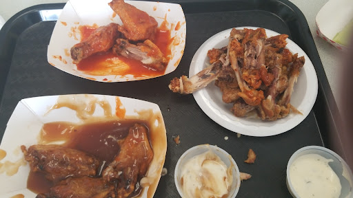Worst place I've ever eaten wings. Guy behind the counter didnt seem to care. Went to the bathroom and the door handle is missing, just a big hole for everyone to look in. Inside the restroom the bathroom walls and doors are covered in graffiti. Food came out really fast, but not surprising considering the puny wings. Somehow they still were over cooked. My wife ordered a water that tasted gross. My Pepsi out of the can was frozen. No wonder they are so cheap.... never again.