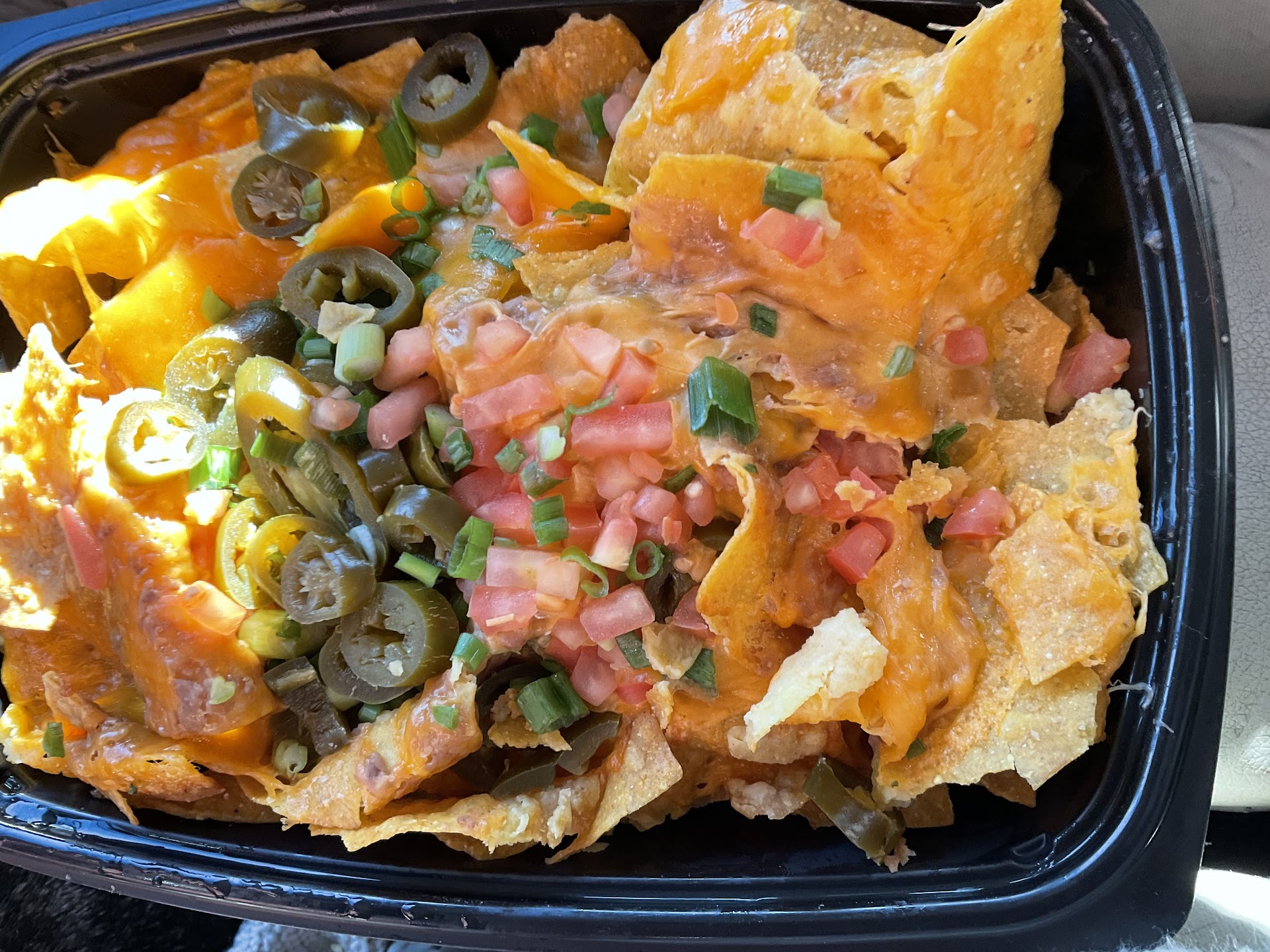 I don’t know what the term “nachos” means to you, but for me a couple things have to happen to be considered Nachos at my age. These would have worked in my top ramen years, or even my frozen totinos party pizza years. But I mean I am probably an anomaly because doesn’t everybody order this thoughtful signature dish of plain tortilla chips topped with old beans, dried up cheese, rounded off with the tastiest divine duo of mushy once dice shaped tomatoes and canned jalapeño peppers conveniently dumped smack dab onto the center of whatever stale chips did not completely soak up all the undrained canned jalepeno juice —with no salsa or pico on the side, no meat, just what you see here and whatever is lurking under that top layer (beans only, its just beans).
