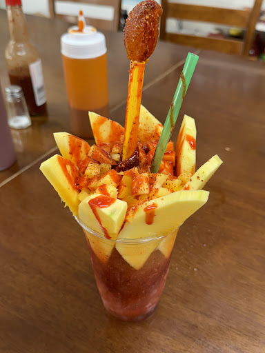 Ordered a chuparosa, churros locos and a strawberry raspado with lechera. The chuparosa strawberry raspado with fresas con crema. It was good, but she told me there was strawberry ice cream and I was not expecting it to be raspado. The strawberry raspado was made with fresh strawberries and it was delicious! The churros locos were really good with tamarindo, chile, cueritos and I asked for no peanuts. Overall, it was very good and the establishment was clean and they also sell different Mexican things. Will...