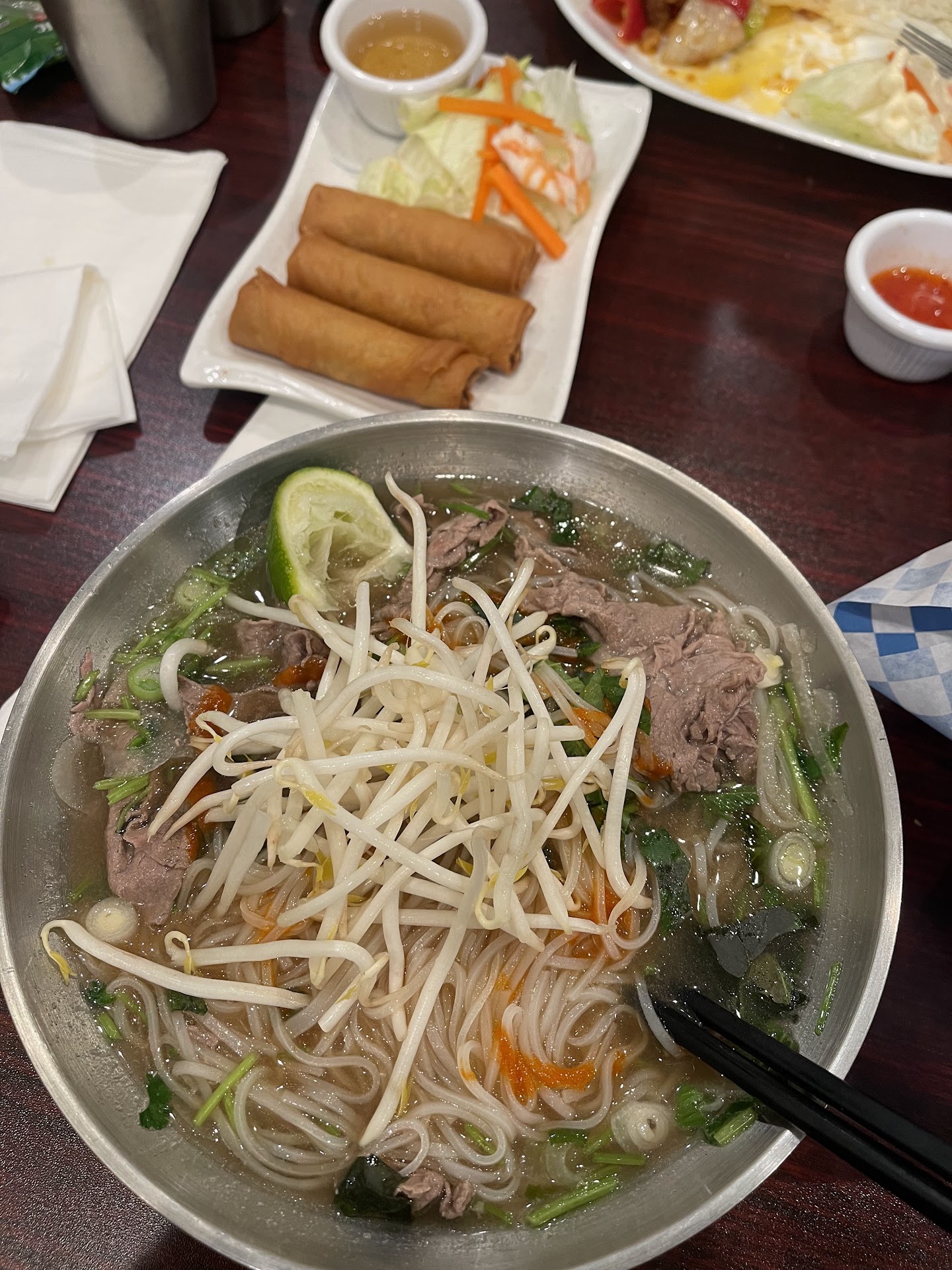 In this most recent visit, we ordered spring rolls, egg rolls, #5 pho, #1 large pho, and large Bun Bo Hue. We received our spring rolls and egg rolls after a few minutes but I noticed that the peanut sauce was not as brown and lacked the crushed peanuts. Then I noticed the Bun Bo Hue was not as generous as before, it didn't have tendon like when I first had it. It seems like they have only raised their prices with no intention of keep consistency or quality. The broths were also packed with MSG as my grandma was even saying how she was so tired and took a nap which she never does. She also mentioned that the brisket was all fatty pieces and didn't enjoy any of her brisket which her pho was a steak and brisket combo. Additionally, we asked several times for napkins: when we received our appetizers and when we received our phos. They didn't even check in on us so there is absolutely no service. Finally, there were a few tables that had finished their meals and the dirty plates were left there even up until we left and it wasn't even busy on a Saturday early evening. I'm glad I stopped coming here and will continue to support other local pho and Vietnamese restaurants that have better quality, consistency, service and...
