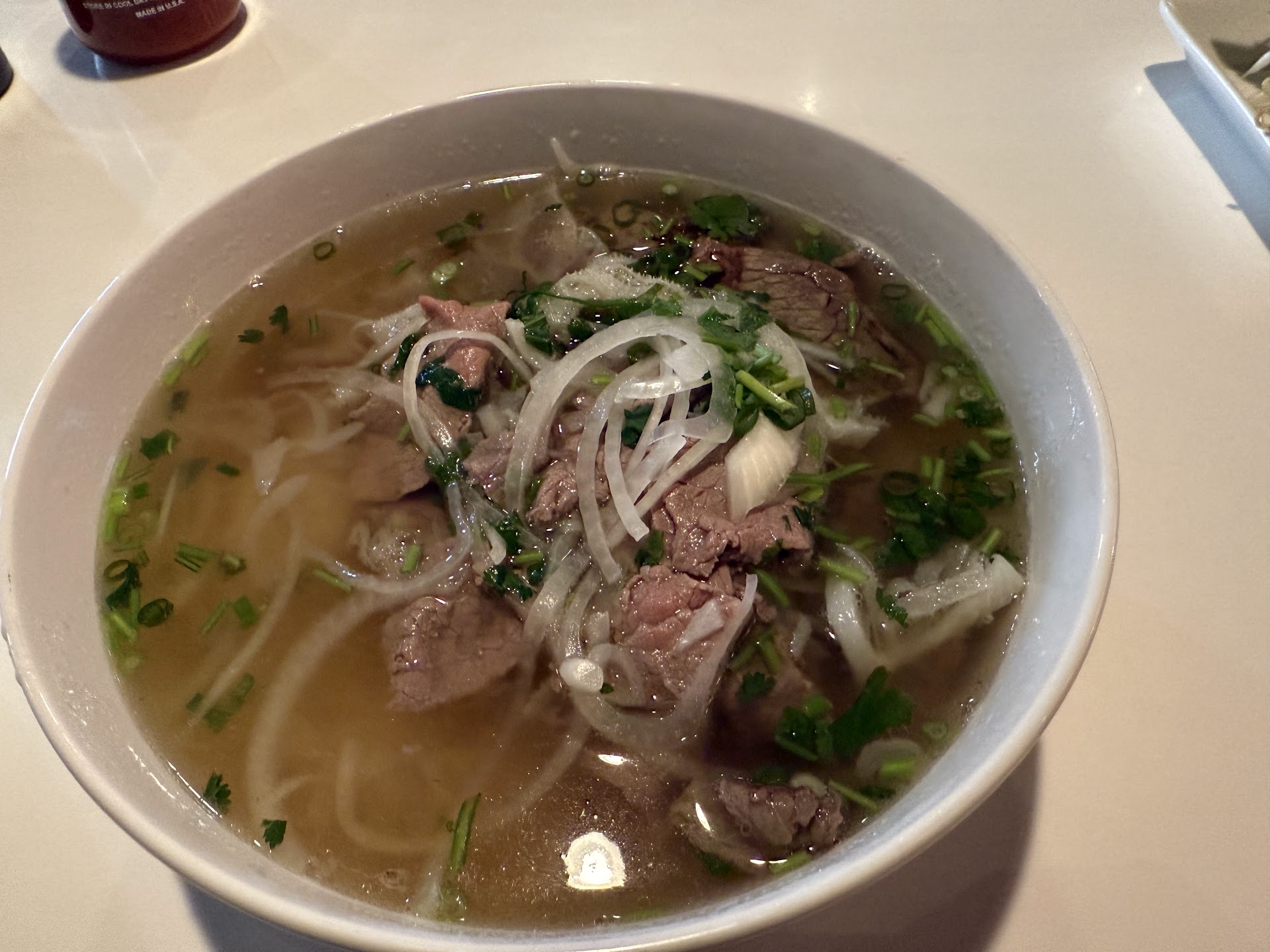To my surprise, the entire restaurant was being run by just one person. The woman at the cashier, who had a rude attitude, also turned out to be the chef. I ordered the P12, which on the menu is supposed to come with steak, flank, tendon, fatty flank, and crunchy flank. When my bowl arrived, it was missing the crunchy flank. The pho broth was so salty
