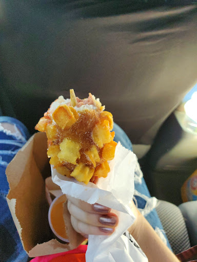 Menu options are slim but what they lack in quantity, they make up with quality. These are some of the best "corn dogs" that I have had. I put that in quotations because the outer coating isn't the usual corndog coating but much better. You can get full dogs, full mozzarella (like a huge deep fried mozzarella cheese stick on a stick) or half hot dog/half cheese stick. Full beef and spicy hotdogs are available as well! You can also have deep fried potatoes embedded in the coating with the same options! You can get one sauce per corndog (I had the cheese one which is pretty tasty and surprisingly a little sweet). There is also an option to add sugar to the outside as well. My friend also said that the lemonade was divine.