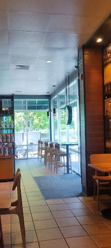 There are a number of negatives, however. This location isn't very large and has an awkward layout, so good seating can be difficult to find during peak hours. There is an outdoor patio, but it's small, somewhat dingy, and squeezed between a drive-thru lane and elevated floor-to-ceiling windows — not exactly someplace you'd like to spend time at. There is also no bike parking available onsite. The nearest rack is a good 3-minute walk away in this shopping center.