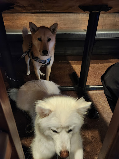 I saw that they had happy hour which is relatively new and we wanted to try some more of their offerings, especially since we're usually up late anyways. I asked our waitress after getting settled into a booth in the furthest right corner if they do allow dogs and she told me that she would ask the manager. She returns with the manager, who tells us that dogs are allowed and we told them that we could seat ourselves somewhere further away from other patrons. Our waitress helped us move to their secluded bar area where there was only one other table occupied and they had two karaoke stations it seemed. As I brought in our dogs, the manager and staff members were extremely kind and welcoming to them. They would give them pets and compliments and ask questions to know more about them. This was probably the most welcoming our fur babies have had! Each staff member we interacted with was super friendly and made our dining experience super memorable.