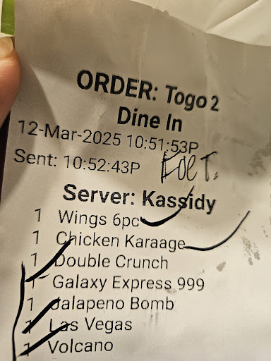 After the warm reception, our dogs went under the table and were very calm. We got to order from the happy hour: California rolls, takoyaki, 2 orders of chicken wings, bacon wrapped shrimp, seared salmon nigiri, and albacore tuna nigiri. We also ordered our usual Galaxy 999 roll too! Everything arrived within a good amount of time and it was perfect temperature to just start digging as we were starving. The fried chicken was our favorite as the base seasoning on the chicken was so good that it can be eaten plain. However, the creamy onion sauce adds a refreshing but fantastic flavor! Additionally, I got their volcano habanero and wow, this had to be one of the spiciest sauces in Federal Way as they brought the heat. The California roll was packed with crab meat and the rolls were huge! The takoyaki was delicious and we really enjoyed the bacon wrapped shrimp! We enjoyed our nigiri, appreciating the cut and size.