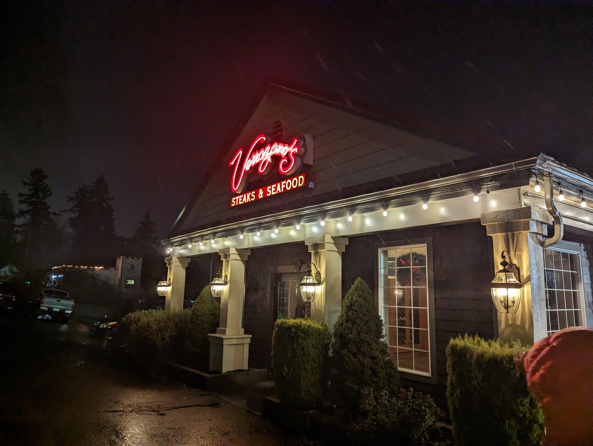 Read moreTerrible! Friend from out of town wanted to go to an Italian restaurant on Valentine's Day. I made reservations at Verrazano's for 7:15pm as I had eaten there many times before. I was warned on the phone when I made reservations that they were serving a limited menu and that there was a 20% automatic service gratuity on all meals. We showed up for dinner right before 7:15 and were promptly seated which was great but everything went downhill from there. The menu was ala cart with 7 different entrees. The least expensive entrée was a chicken/pasta dish for $26. Other entrees averaged about $50-$60 in price which my friend and I felt was really high. We decided to order one bottle of wine ($44) and one appetizer (shrimp cocktail $18), one ceasar salad ($7) and a steak Oscar w/asparagus ($59) and share the meal. The food and wine were good and cooked to our satisfaction. However, when the bread was served it was not warmed and we asked our waiter (Justin) to warm it. He seemed put out by this request. He returned a few minutes later with slightly warmed bread and we asked again to have it warmed. He did so. He served our dinner and only checked with us on our dinner once after passing by quickly. Granted it was a busy night and the restaurant was packed but Justin seemed to be more concerned about getting customers through quickly rather than ensuring a good dining experience. My friend found a piece of hair in her dinner and when Justin brought the bill she mentioned it to him. He said he was sorry about that but he was doing the best he could. We asked to speak to a manager and Justin came up to us and said "I understand you want to speak to a manager. I'm a manager. What is your concern?" We asked to speak to a different manager and a woman came to our table. We expressed concern about the service and she said that she would call us the next day or early the next week. She never called. We felt that to pay exorbitant prices for dinner ($128 for one entrée and bottle of wine) plus a gratuity of $25 for terrible service was outrageous!. I will never return to Verrazano's again. If you want a better value for your money go to Mama Stortini's in Federal Way. I have eaten at their location in Kent and their food is reasonably priced and they have excellent service. Much better value...