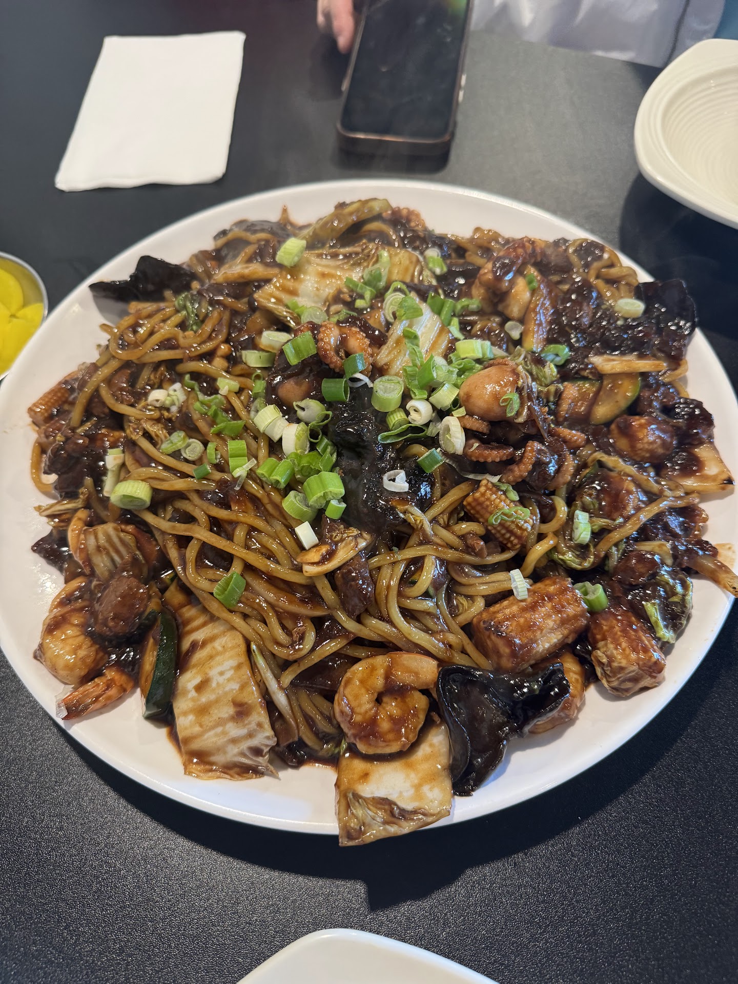 The food took a long time to arrive, and the waitress even mentioned that the kitchen was slow. Her comment that it didn’t matter when she got to us because “the kitchen takes forever anyway” didn’t leave a good impression. When the food finally came out, it was just okay. Jjajangmyeon dish was bland, while the Jjambong was decen. The Tangsuyuk came in a very small portion.