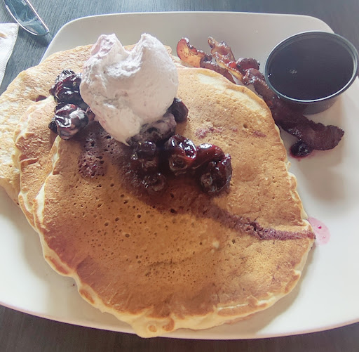 Read moreServer said I can order food with my drink "if I hurry." I got cold coffee, that I'm pretty sure she took back and microwaved for several minutes because it came back so hot I couldn't drink it before leaving and there was no real sugar (only substitute), no unflavored creamer and no spoon or stirrer. I ordered 3 eggs over medium; one was a raw white, one had a fully cooked yolk, and the other was mostly cooked yolk AND runny white.... all 3 eggs together, all 3 cooked different but not one correct. As a general review of the dish, the Texas toast was good and bacon was cooked pretty well, a bit greasy and tough which I find common when it's understandably partially pre-cooked. The potatoes were plane, bland, NO seasoning, boiled, NO sear or color and were barely warm, they tasted like tap water. Oddly enough the ketchup was disgusting, it came in a dish so idk what kind it was, but it was so bad. Chicken and waffles were ordered "not spicy" but spicy (kyan or hot sauced) chicken was brought and the waffles were burnt on the bottom. I liked the chicken, just not the person who ordered it, not spicy. The server never checked on us, I had to get her and ask for the check. She did then offer to get something else but we were just ready to go because of the food, service and loud group next to us. Server did take eggs off bill. Very expensive &...