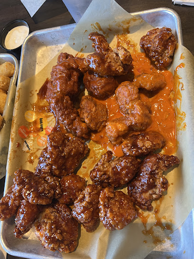Read moreThis was the first time I had the pleasure to dine in a buffalo wild wings. It may have been good restaurant, but my service was really lacking today.. I was given a BRAAAAND NEW waitress. She told me it was her first day and that I was her very first table ever. It was my girlfriend, my brother and I. We got there when they weren't too busy. It was after lunchtime, before the dinner rush. We were seated very visable from many angles. We arrived and the reaction time of the new employee was quick to get our drinks we had two pops n a water. I also ordered a Disaronno Amaretto on the rocks. Then right at the same time, before walking away; she asked if we were ready to order or wanted any appetizers without asking if we had ever eaten there before or seeing if we needed help finding anything. We asked for a minute. She must've got lost; it was about 5-10 mins for the pops, then an additional 10 mins or so just to get the wrong drink. I ended up with what tasted like watered down seagrams 7. Then it was another 10 mins for the replacement. We asked for some of the food to come out seperate, but as you can imagine it all came out at the same time so some food got cold as we raced to scarfe down the appetizers. To top it all off, throughout all this time we've only been checked on like 3 maybe 4 times. All I have to say about this is they shouldn't have sent her out on the floor alone without being properly trained. She didn't even know the menu. I ordered the traditional and boneless combo. She said if I ordered a large I got 10 of each wing. When it finally came out there was only 6 of each. It took so long for the nachos to get out to us they were practically soggy already and it didn't have the grilled chicken I paid extra for. The wings didn't even come out with the celery. In my opinion, Between bad coordination in the kitchen and lack of menu knowledge/incomprehension of the menu with the new waitress it was a terrible trip that wasn't worth the $65 in food and $70 in gas. I won't be making a stop there again if I'm in town there. I'd rather go...