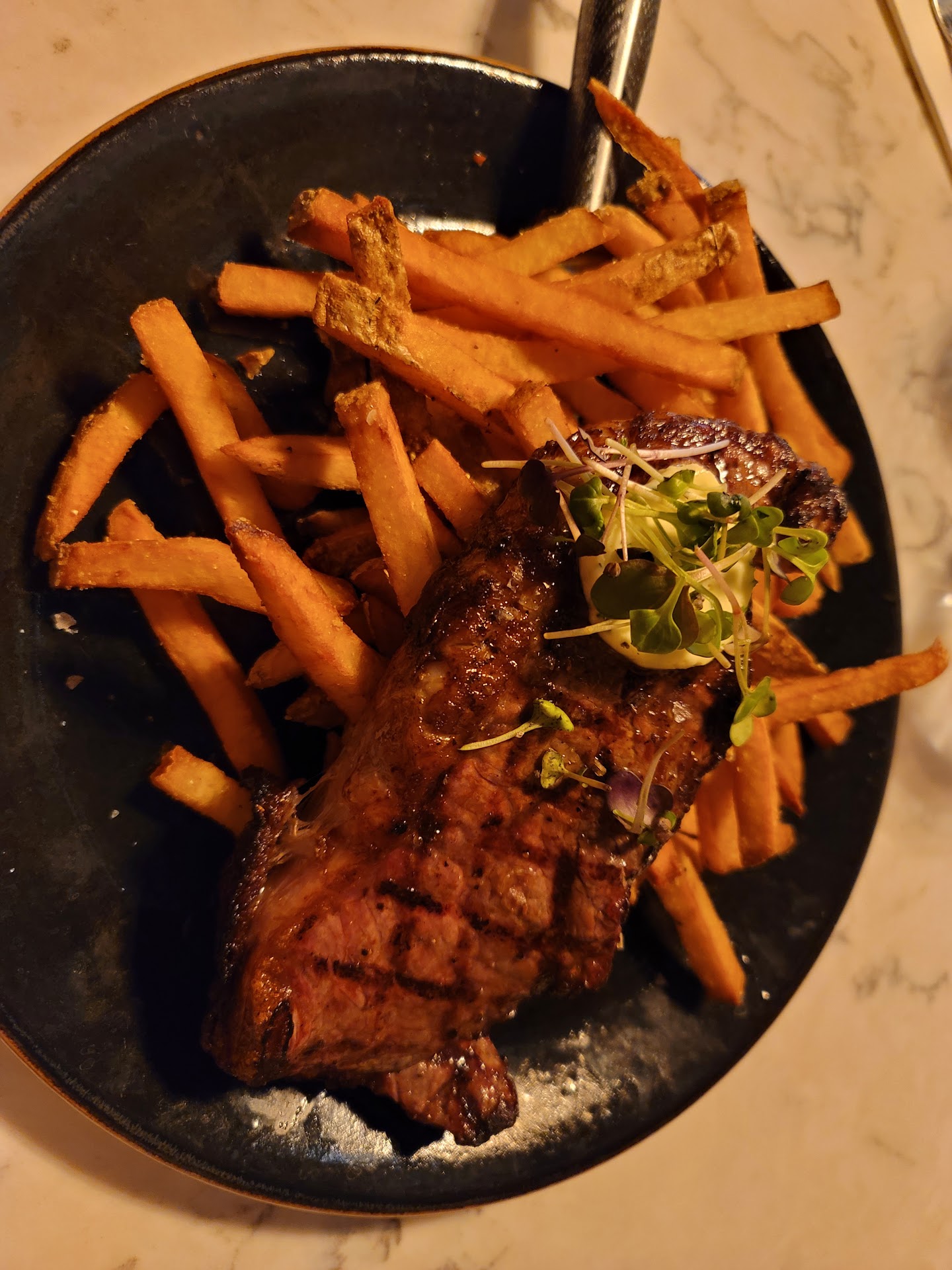 Read moreMy daughters 25 and 21 we're excited to take me to this restaurant downtown Fenton. I am from Denver and love a good food and I have a lot of friends who are chef/owners always excited to try yummy new food… That being said we arrive at seven, when our reservation is, the four of us stand by the small entry way by door for a good eight minutes, we are greeted and taken upstairs to a table that is lovely get our carafe of water, order cocktails and a Mocktail and appetizers… 15-20 minutes later we got our drinks and ordered our main course (all the while still no appetizers) my 21 year old ordered the steelhead my daughter and her boyfriend both had steaks and I had the lobster rolls, we're good 50 minutes into our stay still no appetizers, salads come. my younger daughter and I go to the bathroom my older daughter meanwhile upstairs says to the waitress something about the appetizers she said it was completely her fault and put them in… our main entrées come ; both steaks were over cooked, my daughters fish had pin bones in it my lobster rolls were good but dry as we finish the waitress brings the appetizers? At the end of the meal... I mentioned to her the bones, the over cooked steaks and she says she'll take 20% off the steaks and the fish ... in my opinion one of the apps at a minimum should've been comped and a manager should have spoke with us. trust me I'm not looking for free food here I have no problem dropping $6~700 on a good meal for four… we get the bills, my daughters were buying me dinner so bills split in half. Being a server and bartender for the last 30+ years I of course grab the bill to see if she charged us for the appetizers and noticed that she took 20% off one side of the bill? she said some thing when dropping the check like she had discounted it before the split and it only showed up on one side but anybody that can do simple math knows that 4.50 off of a $45 steak is not 20% no apologies from the chef nobody other than the waitress ever at our table? Does this establishment not have a manager? To say this was a hugely disappointing experience for my daughters who were so excited to take me out would be an understatement. whomp whomp it's unfortunate there was so many things on the menu I was excited to try overtime but...