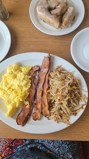 Back to the food! They claim to be famous for biscuits and gravy and their homemade cinnamon rolls. I took that as a personal challenge and, goodness, they did not disappoint! The biscuits and gravy are only 2nd to a family recipe. The cinnamon roll was phenomenal, to the point my kids stole the last half from me. Outside of those two specialties, the bacon was very crispy, including the fat, but not burnt (as a parent we really appreciate for potential choking issues). The sausage patties and hash browns were also top notch. The 'low' point was toast, but come on, it's toast...what can one say about that?