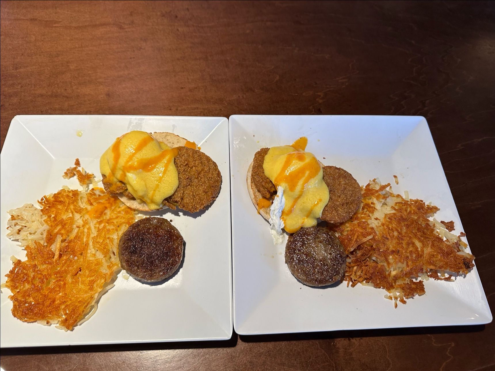 Read moreBusy for good reason! Since we didn't have anywhere to store leftovers, my husband and I split the fried green tomatoes Benedict and hashbrowns and added sausage. Our server Amber, said she could serve it on 2 plates (very nice). My husband asked how the hashbrowns were and she told us that the are fresh potatoes/no frozen. It was abundantly clear how's fresh everything is! Everything was beautiful, perfectly cooked, and incredibly delicious. The hollandaise sauce was smooth and creamy; possibly the best I've ever had. The fried green tomatoes were also very good even though I don't usually like a cornmeal breading. Give me a second with the hashbrowns because you may think, how hard could that be to mess up, but these are shredded finer that I usually have, so they are crispy on all the right places without being overdone, but they also are tasty and not at all greasy. Another nice touch, that is possibly just how Amber is, she calls people by their name, so it makes it feel homey in a comfortable atmosphere. Seems like a lot of locals come here often, and I understand...