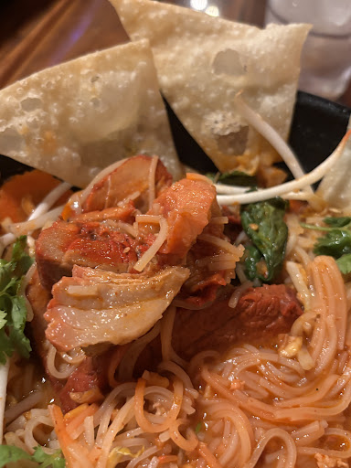 We had an amazing lunch at the Mini Drunken Noodle! We started with the chicken satay, which was perfectly grilled, tender, and full of flavor, with a peanut sauce that was rich and balanced without being too heavy. The crispy pork belly rice bowl was the star of the meal—the pork was beautifully cooked, with a crunchy skin and melt-in-your-mouth inside, paired with rice and fresh toppings that made every bite satisfying. The pho was another standout; the broth was rich, aromatic, and deeply comforting, and the combination of meatball, rib, and beef gave it incredible depth and variety.