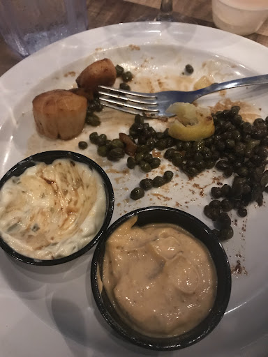 Read moreMy husband and I were very excited to try this new place. The location seemed so beautiful. We were very impressed with the look of the place, and even though the parking lot was full we were sat immediately. The view outside on the water was gorgeous, they had good live music, and we were excited to see the menu. The menu was very small with not much selection. Our server was very nice, as we ordered drinks and placed our food order. I ordered scallops with a baked potato and my husband ordered oysters and hush puppies. It took a very long time for my salad to come out, maybe 15 minutes. I eventually asked if it could come out before my meal. In the meantime we asked the bartender about different drinks they might have and it was obvious that he was very new because he told me he didnât know if they had sangria, and didnât try to find out for us. When our meals finally came out after almost an hour, they set 4 scallops in front of me with no sides, and the server said, âoh, thatâs right, we ran out of baked potatoes.â I was upset because waiting almost an hour for our food no one ever came to tell me they didnât have half of my meal. I took a bite out of the 4 scallops and they were so overcooked that they were rubber, but I was starving so I ate them while I waited for a different side to be brought to me. I was afraid it would take another hour if I asked for new food, so at first I didnât say anything. My husband could not eat his oysters as they were not good either. He did, however, like his hush puppies. The manager never came to talk to us about our meal either when he was informed that there was an issue. Sadly, we left hungry and went somewhere else to eat. We might come back once they are more established and have worked out all of their kinks, but not anytime soon. Sadly this was not a good dining...