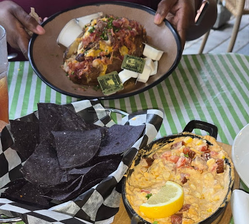 Girls lunch out first time going to the Back Porch. Of course we sat on the back porch beautiful day wind blowing by a little marsh area. Miranda was our server and she was fantastic! She ran through the menu since it was our first time her favorite and what was more popular with the customers. Being foodie of course the three of us ladies do what we normally do order something different and share. We started off with appetizers we got the honey cornbread, sausage dip and the brussel sprouts. The cornbread with white cake nice and fresh sausage dip so rich and lots of meat, and the brussel sprouts crispy, very flavorful with the pickled onions on top. Entrees were the brisket macaroni and cheese, two of the ladies got that and the brisket stuff baked potato which I got. The brisket macaroni and cheese was so large it was enough for two people. Lots of juicy brisket baked in the macaroni and cheese with barbecue sauce layered at the bottom the girls were raving! My baked potato did not disappoint it was a good go to when I lived in Texas and you got a stuffed baked potato it had so much brisket and bacon and cheese and they did not skip on having the butter on the side and the sour cream and I think I used almost every pat of butter on my baked potato I could not finish it but thoroughly enjoyed! Yes we stayed for desserts one friend got some more honey cornbread the other friend got the blueberry peach cobbler alamode, I got the peach cheesecake. Being a food service manager and a baker myself a cheesecake was so creamy and there was peaches inside the bed inside the cheesecake with a layer of peach temple on top but the peach whipped cream really topped it off because the flavor was there throughout the whole eating experience I ate it all didn't take it home I could not let my whipped cream melt in the sun. The blueberry peach cobbler was wonderful most cobblers are so sweet and packed with sugar but this was not sweet even with the vanilla bean ice cream was awesome. All in all we were so excited when we got our food we didn't get pictures of everything because we couldn't wait to dig in. The value of our meals were most definitely worth it for the amount of food that we got yes we took home. On our way out we ran into one of the cooks JR. I several pats on the back and gave him a verbal review. You can tell that the food was not Frozen and just come in and you throw on it in the stove or oven or grill, they were made in That's that is very rare in most restaurants nowadays....