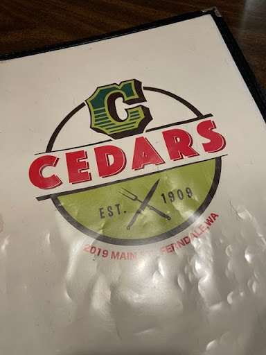 Read moreMy wife and I along with members of the Golden Campers camping club went to the Cedar's Restaurant for dinner. One couple had fish and chips, another couple split meat loaf between themselves, another couple had hamburger steak and a chicken sandwich, and my wife had a shrimp salad and I had a camper's saute'. The portions were very large and everyone was filled from their various meals. The prices were very reasonable, for example, my wife's salad was $16.99 and my camper's saute'was $17.99. The couple that had the fish and chips paid $16.99 each, the couple that split the meat loaf meal was around $17.99 and the person that had the chicken sandwich paid $14.99 and the person that had the hamburger steak paid $19.99. The service was very exceptional. The wait staff came and checked on us to see if anyone needed anything. We arrive at 5:30pm and shortly afterwards the restaurant, filled up with the locals from Ferndale to enjoy their evening meals. I would definitely recommend the Cedar's Restaurant in...