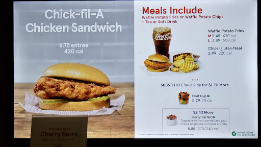 Read moreFirstly, you're getting price gouged when all the other food vendors agree not to raise prices past a certain point. A 12 count nugget meal costs $16.39 before tax, and down the street the same meal costs $11.69. Secondly, whoever owns this location should visit a proper CFA and learn something. Customer service in terms of friendliness or speed do not come close to other locations. After someone beckons you over to the register to order, you then sit in an awkward queue of people waiting for food with nowhere to stand. Orders come out at the speed of smell. Then you discover the cashier was a previous Starbucks employee, because your name on the order is nothing like the name you provided, or was visible on your badge. Once you sit down with your $17 fast food, you realize there's no dipping sauces. In summary, this location is a disservice to the CFA name and...