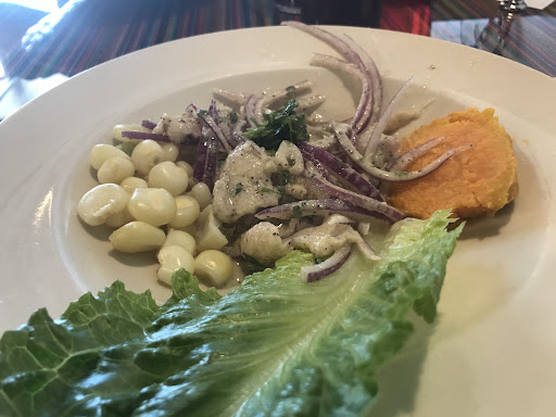 For entrees, we had to have the famous Peruvian rotisserie chicken. We got a half, and it was incredible. The skin was grilled with the Aji sauce that offered just the right kick. Inside, the meat was very juicy. We devoured it. We also had the Aji de Gallina, chicken is a yellow cream sauce. While not bad, it didn't have quite the same kick as the "La Brasa" so I don't think we'll get that next time. (Besides, there are so many other interesting dishes on the menu, we want to try some others anyway...)