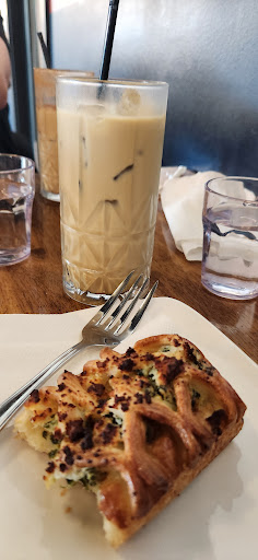 Super friendly staff. They say hi to you, and bring coffee to you when you sit down. Also, I feel like people who work here knows coffee. You get an actually coffee mug when you order coffee to enjoy inside (some establishments still give you paper/plastic to go even though you are enjoying coffee inside) Dedicated parking with one EV charging spot (level 2). Huge space. Modern interior. Clean. Quiet (at least in the morning). 2 bathrooms. Fast WIFI High quality coffee / espresso drinks. You can bring your dog in when you order coffee (I don't think you can sit inside).
