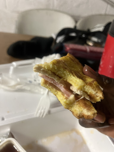 The picture shows a*monte cristo It should’ve labeled- French toast sandwich. A monte cristo has 3 meat, this one had 2… The waitress listened to me describe what the sandwich was- I’ve had one before- never intervened to correct me. The French toast was bland, it took all the syrup i had to try and make it sweet enough, i should’ve grabbed the strawberry jelly packs. The wings i got (6 pieces)- cost me 9$! When I looked at the rest of the menu, that price seemed wildly disproportionate; for two dollars more I could get three eggs, a steak and toast and potatoes? I’m used to my wings costing around 4 to $5.00 dollars, $6 is expensive but 9 , and I didn’t even get my Texas toast??