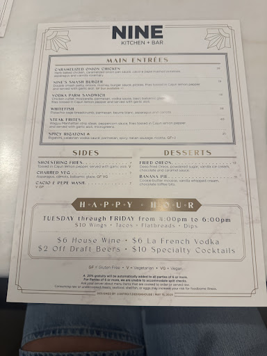 Read moreNice, local bar and restaurant with a clean modern vibe. We were there on a Tuesday at 6pm before it was very busy. Nice friendly staff but our waitress was covering quite a large number tables. Our service staff really is 5/5 but short staffing is the reason for 4/5. The menu selection has options for vegetarian, vegan and gluten free. The entrée I wanted wasn't available due to delivery issues. I, personally do not like spicy food which proved to be limiting for my choice of entrée. I opted for the Mediterranean salad with salmon. The salmon was perfectly grilled and the salad was quite tasty. I'd never had a salad quite like it before. Since I cannot eat raw onion they were able to remove them from my meal. I took a picture after I'd started eating the salmon. However, my partner likes spicy and was delighted with his spicy riggitoni with spicy Italian sausage. For the food we had it's 5/5 but I'd like more options for those who don't like spicy food. They also have an extremely well-stocked bar serving cocktails, mocktails, beer and wine. I chose a mocktail from the menu. My BBL mocktail was absolutely gorgeous and tasted amazing. It was a great choice. This was a birthday outing for my partner's 81st birthday. The manager graciously comped our dessert. The fried Oreo with ice-cream was an outstanding finish to the evening. We also chose to finish with coffee. We had espresso and mocha cappuccino with our dessert. Because I found so few non-spicy offerings, I'm unsure if I would return for a complete meal due to the spicy menu items, but my bar drink and dessert were so outstanding I'd consider coming in for drinks and dessert at a later date. BTW: my partner felt the menu was perfect and his meal was fantastic. Others have posted pictures of our dessert and pasta dish so I only added the...