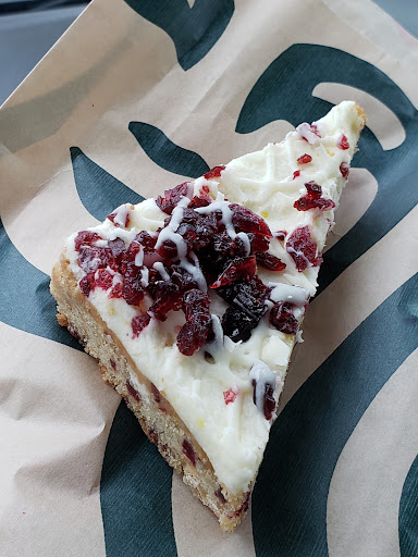 The coffee was a new flavor for me so I was excited but I knew right away it was lacking much warmth. I couldn't taste the "flavor" and it just wasn't sweet. Unfortunately I didn't like the Cranberry bar either. The icing was extremely thick and WAY too sweet while lacking flavor. Rather than being like a cream cheese base it was more like a cake icing. The cake itself was a bit dry and super dense like it was over baked, and since its served cold, seemed stale due to...