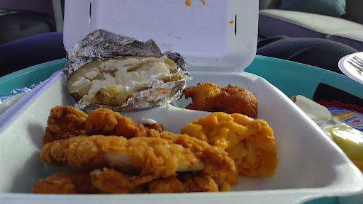 Read moreFirst time trying Captain D's. I tried the chicken dinner with a baked potato and mac and cheese. It also came with two hush puppies. The chicken was thick and tender white meat chicken. I'm on the fence about the coating I will have to try again but flavor didn't seem to be the greatest. The baked potato was generous with sour cream and butter. However it was steamed or microwaved so there was no crispy skin at all. The hush puppies were very bland, and the mac and cheese was kind of just one small spoonful clump and was just okay. The meal was $ 11 ish. I'm not sure what I was expecting but I've seen a lot of people post on other sites that they thought it was good. I will definitely give them another try though. I will try the butterfly shrimp and possibly the green beans with ham, and maybe the jalapeno poppers. I'm not a fish eater other than shrimp so maybe this place is...