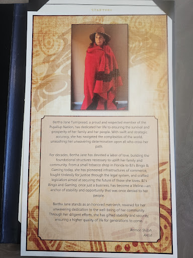 I had the pleasure of dining here the other day. It was a Saturday evening and not very busy. The atmosphere was quiet yet inviting. The only way you know it’s above a bingo hall is because you have to walk through it to get to the restaurant. The decor amazingly displays the Native Heritage of the Puyallup Tribe. You can tell they really thought about the quality of your experience down to the glasses and silverware.