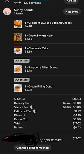 Half dozen comes to $7.35. There is a minimum order to pay with card, so dont come in expecting to buy one donut and pay with card. There is also a .35 charge to pay with card.