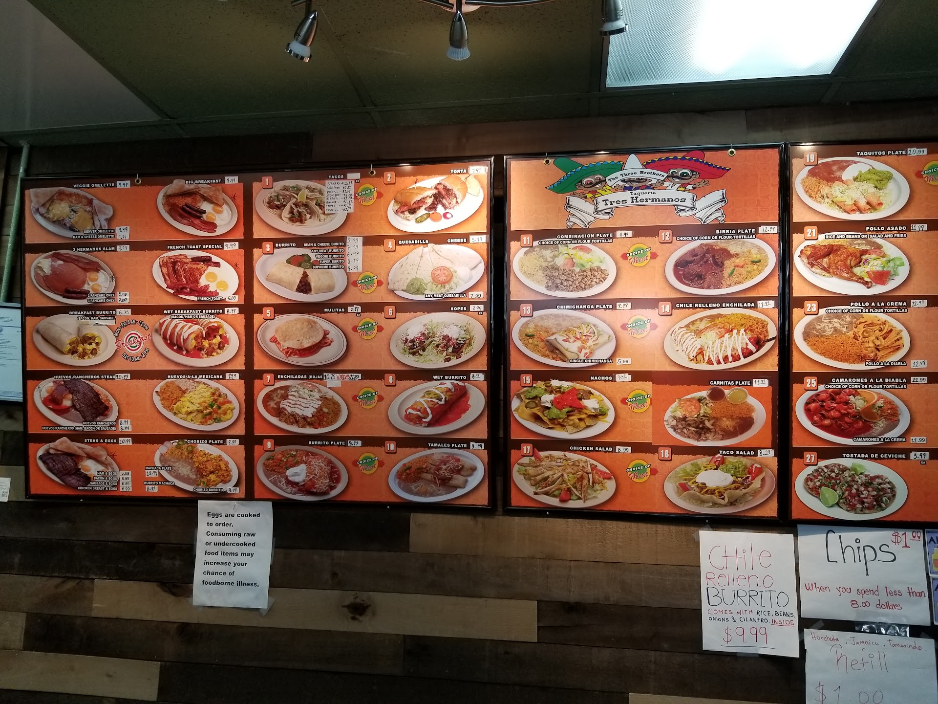 We ordered 3 items 1 Carne asada burrito(regular) it only had beans, rice and meat(no lettuce at least) very plain, we added avocado and sour cream at home to make it better otherwise it's a pass(unless you pay for the extras) 4 asada tacos, they weren't that bad only bad thing is that it had very very little cilantro. 3 carnita sopes, they were really good only thing I absolutely liked.