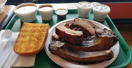 I recently visited The BBQ Place and tried their 3-meat combination, which included garlic bread, macaroni salad, potato salad, beans, and a selection of tri-tip, pork ribs, and beef ribs. The garlic bread was excellent—a perfect, flavorful start to the meal.