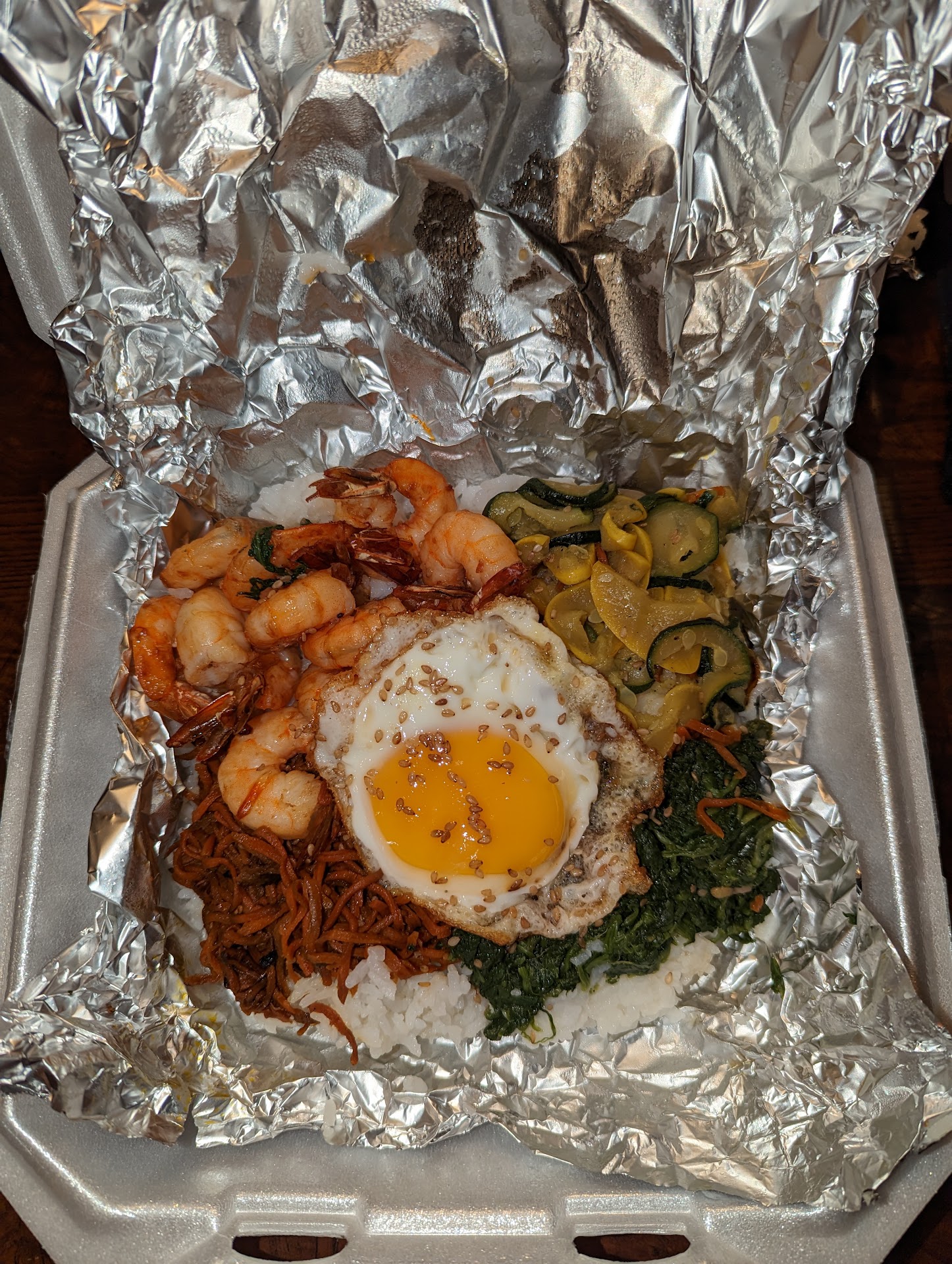 Ā Ā Ā Read moreDecided to order Asian food for dinner, and it's been since pre COVID since we ordered here, and we missed it. We ordered from the online menu, on a Saturday at 5pm, the "KMD-3" Bibimbob (spicy sauce on the side) with Shrimp, "KMD-6" Jab-Chae potatoes noodles with fried Tofu, and "KMD-8" Gal-Bi short beef ribs in sweet Korean BBQ sauce. All dishes were very presentable and as expected like we were in the restaurant (Not like some restaurants that just throw it in the box), And each dish was delicious! My husband doesn't eat Asian food often, but he inhaled his bibimbob. I love fried tofu with noodles, so the firmness of the tofu was perfect and tasty, although I would've liked bigger pieces over small and diced. Our picky eater child was courageous enough to try the noodles and beef, and she liked it but is not yet accustomed to the black pepper (perfect for us adults, though). The dishes pictured I'm sure looked better than when I took them, because I picked up the order about 20 minutes late. The stated cook time was 30 to 40 minutes and I showed up at one hour. For taste and decently priced, abundant food, I rate 5 stars š¤©. Thank you Asian Grill for meeting our expectations- I will continue to support the...