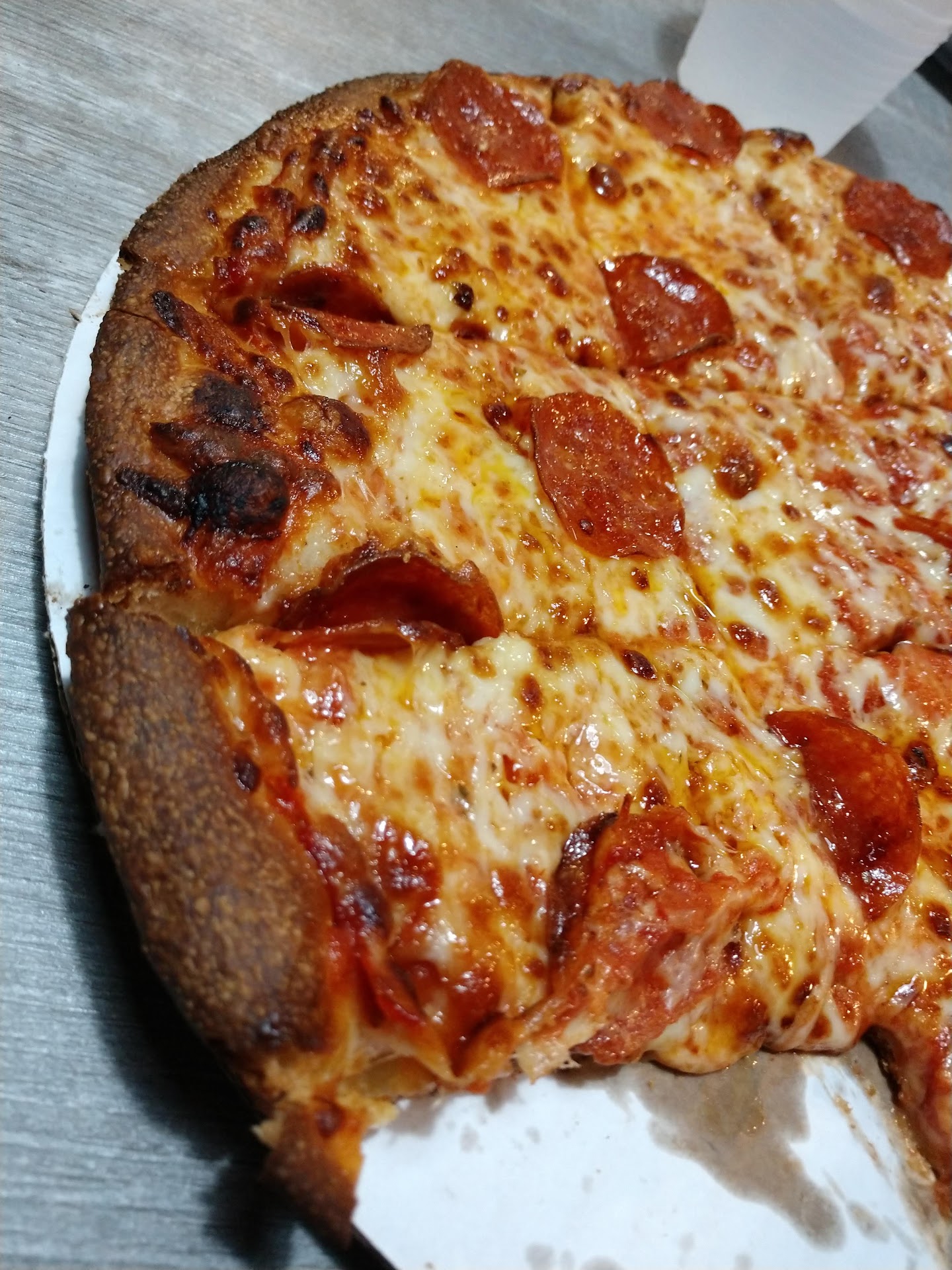 Read moreI’m visiting from Mississippi on business for the next 6 weeks. My hotel recommended Bellacino’s with raving reviews! I was hesitant at first, but when my husband and I walked into the restaurant the aroma was delightful!!!!! The service was great, the atmosphere is great, clean, and family oriented. Our pizza took about 20 minutes and they bought it to our table. The first bite was delicious and all the ingredients were fresh!! We ordered a large sausage and pepperoni on half, and chicken and banana peppers on the other half with extra sauce (on the entire pizza). We ate the entire pizza and left no crumbs!!!! Haha haha!!! I will definitely be back, maybe...