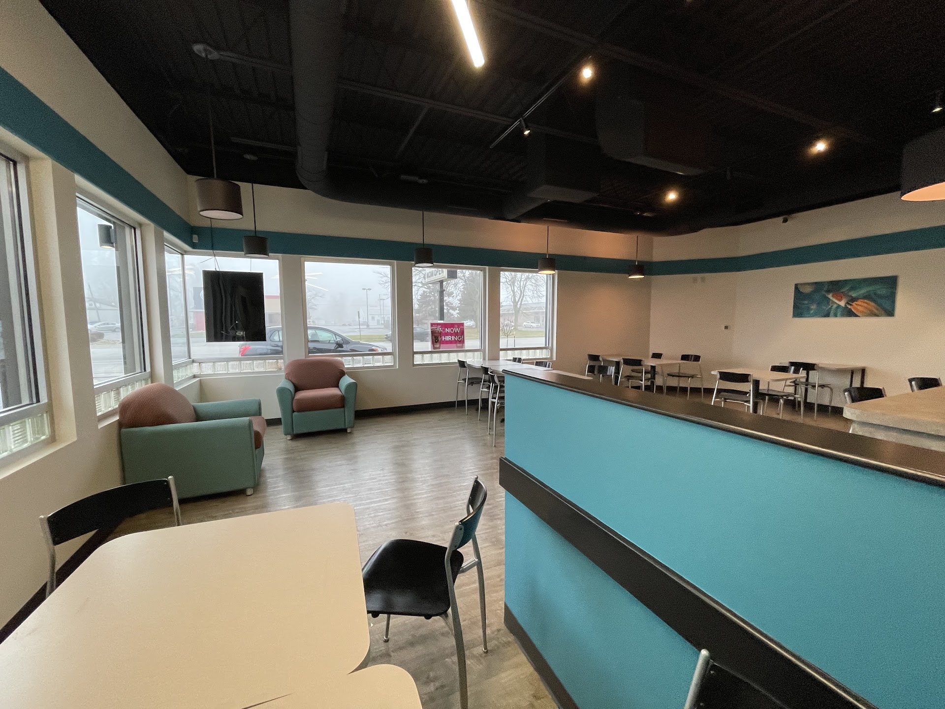 I went to this location for breakfast and to work for a couple of hours, since the local coffee shop down the street shut down. To start, it was a little confusing since the register to order in tucked in the corner and kind of hidden when you walk in. Luckily the staff was friendly enough to guide me to the correct counter. I ordered a matcha latte and an everything bagel with cream cheese. Both were good, although the matcha was nothing special and the ratio of tea to milk seemed a little off...either way it wasn't too bad. I set up my work area in one of their half booths that features booth seating and a desk. I thought it was perfect to work at and take a video call. unfortunately, the ground beneath the seat was super sticky and gross (and as i looked around, the rest of the floors could have used a nice cleaning). It was so sticky my shoe was stuck and after I left I had to clean the bottom of my shoes. Also, the booth is a nice feature BUT whoever designed it was a giant. I am 6'0 and the desk height was so tall and made it very uncomfortable to work. I would say staff was friendly so 5 stars there, food was meh so maybe 3 stars there, environment was like 1 star. The place has potential to be a nice atmosphere...with Starbucks opening next door, it might help them to make some...