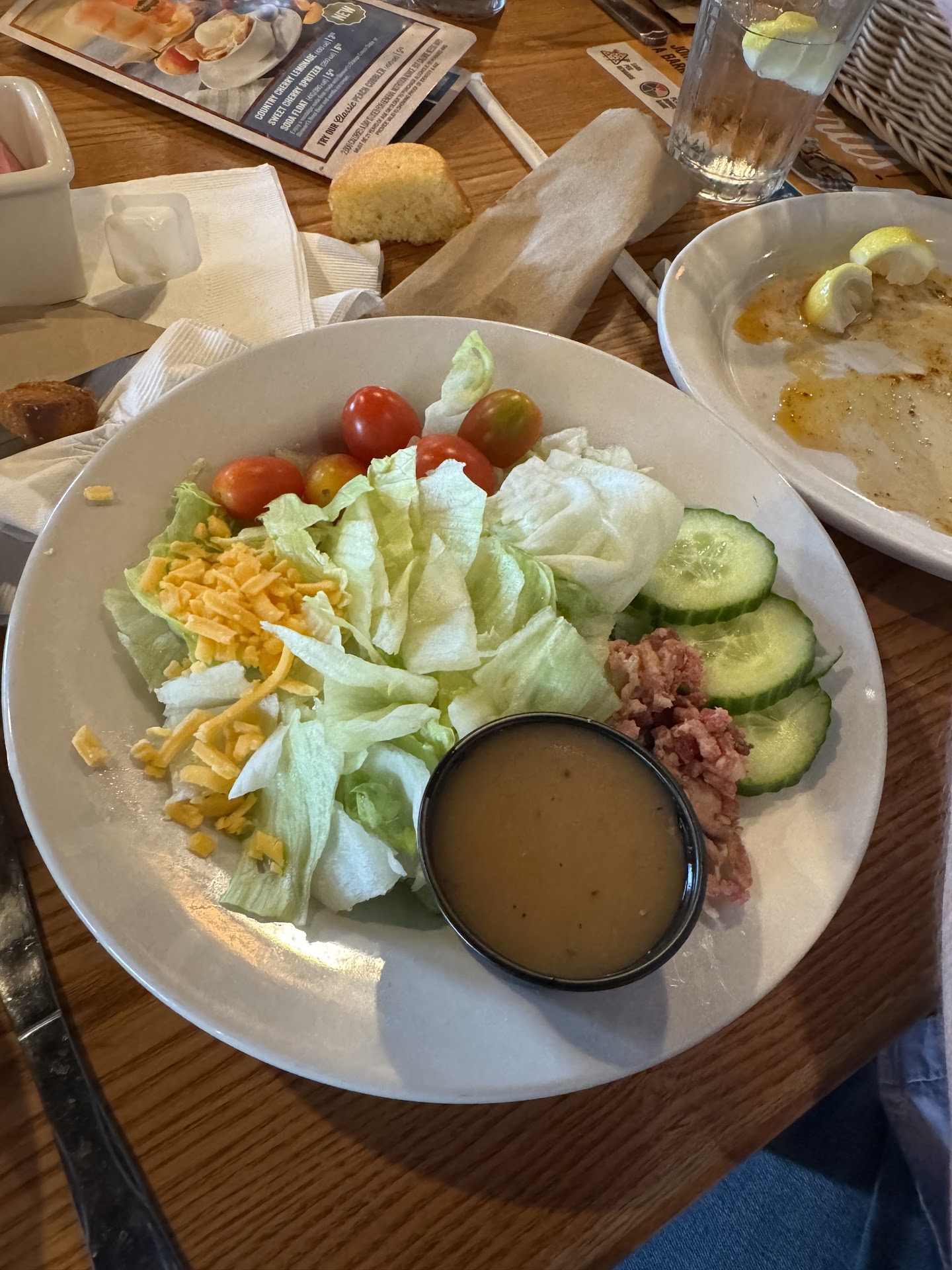 Read moreWaitress was always zooming off to another table or there would be seemingly long stretches of time where you wouldn’t see her at all. We waited way entirely too long for our dinner to show up. Early on, she asked if we wanted biscuits or cornbread. We said, both. Much later on as we had to inquire we asked where our bread basket was. She finally brought it out. There was no cornbread. We asked about the cornbread, she took the basket back that had the biscuits. We thought, why wouldn’t you have left the basket you originally, finally brought and then take it all back? Leave what you brought out and bring another basket with the cornbread when it was ready. I asked for flavored ice tea, it was essentially plain. She came out with a squirt bottle and flavored the ice tea up decently at that point. She said, well a lot of people don’t like their flavored tea too strong. Later on further into the meal, she brought out an ice tea refill. It tasted exactly like the original one, nothing flavored just unsweetened. Her hurried lack of attention to detail left nothing to impress upon me. We’d ask for something additional or to tweak the meal at various point's, she was just like “oh, hoe hum.” After we finally finished our meals I complimented the waitress that was next to our table but had an entirely different area, on her attentive skills and handling her customer's with what appeared to be top notch efficiency. She appreciated the nice compliments I gave her. I couldn’t wait to get rid of the waitress we had. My fiancé mainly dealt with her, I was largely finished with her at the starting gate. When she would show up at our table, I’d look down or away from her. Not sure her situation but wore a big blue bandana on her head. Wasn’t sure if she sweated a lot or thought she belonged to a biker club. The time it took in all seriousness to wait for our dinners to show up, if I had been there by myself I would’ve simply walked out. Absurd. I left a 15% tip. I felt like I was way entirely too generous. We frequent the Brighton Cracker Barrel location quite a bit, if I spot that waitress again I’ll gladly move to a different table and server....