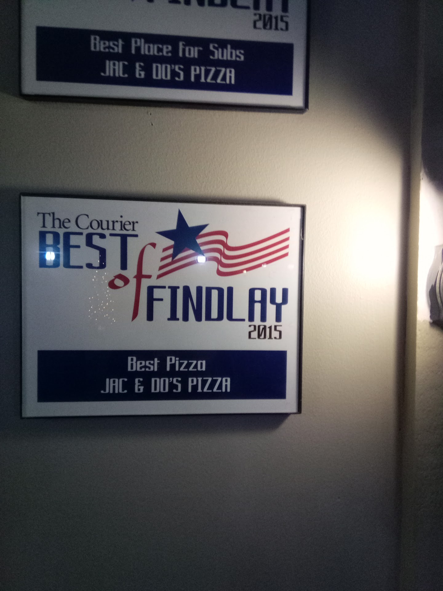 Read moreI have ordered from jac & do's. Of findlay ohio for a while now have always loved there service an pizza, although tonight i ordered a 21in lots of meat qith extra cheese an banna peppers with cheese sticks with marinara. The person that took my order was very rude, i did not get banna peppers or extra cheese (even though they charged me for it) my cheese sticks were horriable an the sauce was so thick an old it made me sick an on all that there was a hair in my food. So i call back an try an have a polite talk with them to have some lady yell at me while talking over me an tell me that i was lieing so she goes an looks the reciept up to find out ahe was wrong an said all i can do is give you 4$ off your next order even though i paid almost 40$ needles to say my family an i will never be eating from jac an dos in...