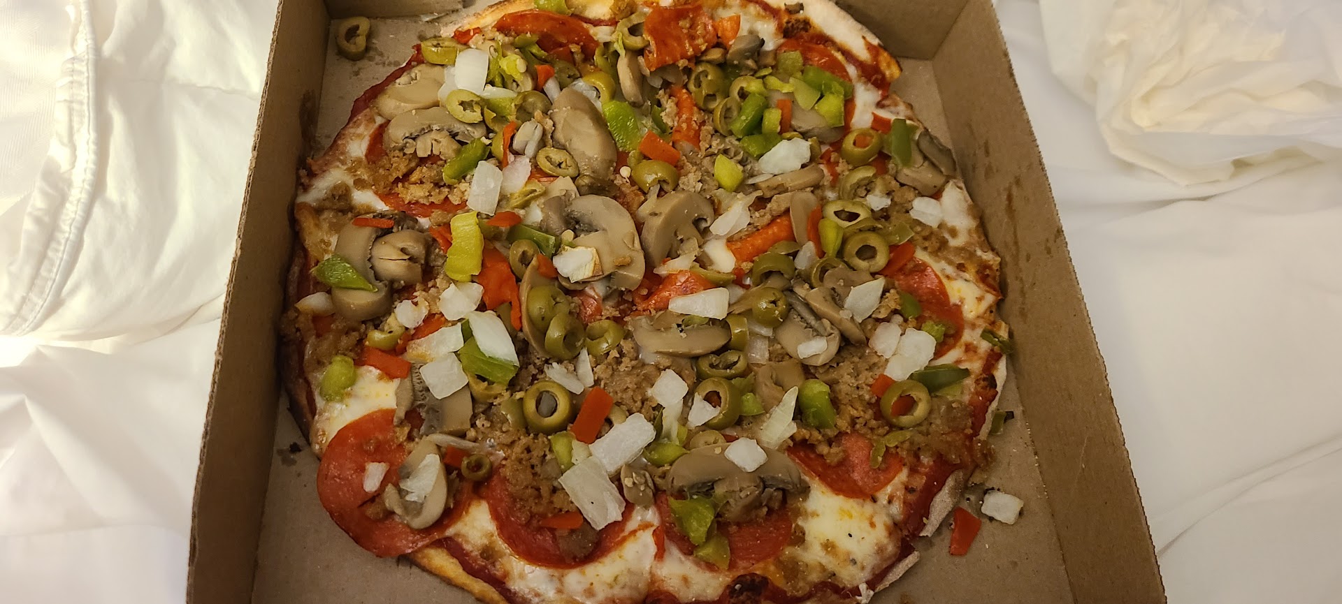 Their 12” deep dish with pepperoni, mushrooms, green olives, onions and green peppers could feed an army. Not only hardy, but tasty and savory. Traditional JD flavor with a great crust and “fillings” rather than “toppings”. I loved it. Everyone should add this new treat sa menu option.