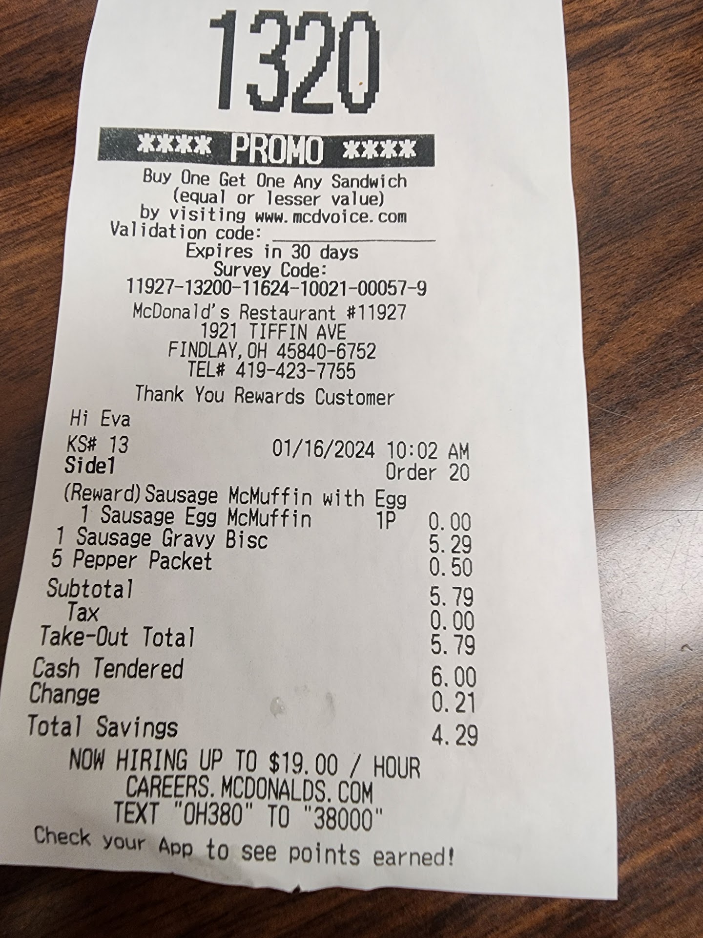 Read moreWe enjoy food from this McDonald's, it's usually hot, fresh & tasty. 😋🍔🍟 We usually get the chicken tenders/strips, and we've not received any sauce (for 2-10 packs of chicken tenders/strips, we should have received about 8 sauces total; we got 0). This has happened 2-3 times now, even though we have asked for it. It had showed up on the screen & on the receipt, and we also asked at the window to make sure they put it in the bag, (since it had happened before), only to find out once we got home that there wasn't any sauce in the bag. We must compliment the quality of the chicken though (we haven't had any gristle or anything questionable). The breading is excellent-very crispy (even reheated as a snack for later!) and the chicken tenders have always been hot & fresh for us. The short wait while it is cooked/fried is worth it. Plus, the brown paper bag with handles that they put our order in is very convenient, as we usually have bags of groceries, etc. from the store to carry in at home as well. Thank you,...