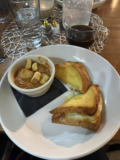 Read moreHad a nice lunch with a friend in a cozy atmosphere, pretty decor, tasty food, friendly staff! We both got the grilled cheese and tomato bisque for $15. I had them remove the garlic aioli as a lot garlic irritates my gut. The bread was a very buttery brioche toasted to perfection and the little cup of soup was delicious! I had drip coffee and friend had Almond milk chai latte, both good. Bathrooms were clean, beautiful, well stocked, hooks for bags and coats and changing tables! So baby friendly but the decor and cuisine is not very kid friendly. Many $7 cupcake options in yummy flavors including gluten free and vegan. Various coffee bar options. A little pricy but what’s not these days. I look forward to more evolutions of...