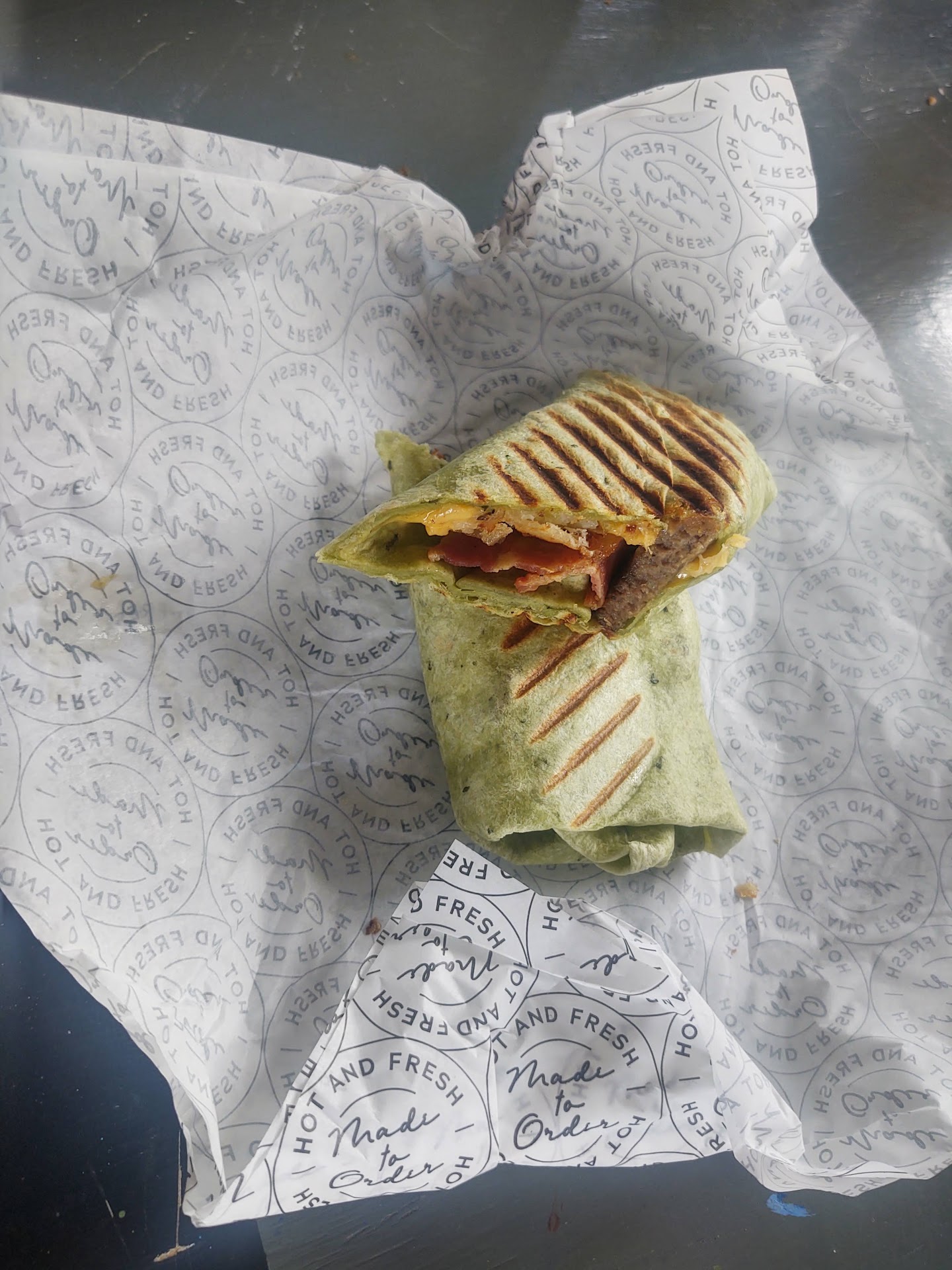 The breakfast panini is very good, the bread tastes fresh and the egg, bacon and cheese taste very good. Nothing is burnt or overcooked.