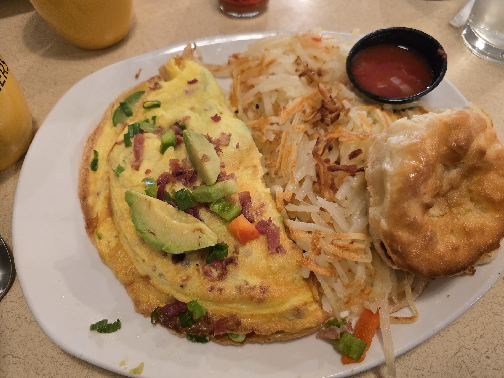 Read moreFresh eggs, crispy bacon, big portions. To be completely honest, it's closer to 4 stars but for the area, it's the best of the bunch. The coffee is delicious. The eggs are fresh and they will accommodate any order. The service is super fast. The hashbrowns use fresh potatoes but I was disappointed that I asked for them crispy and they were not. However, the portion filled half the plate. The avocados were fresh. The salsa is canned. The biscuits were disappointing and griddled. However, the next day, I came and ordered sides of English muffins toasted no butter, the thick cut bacon, and the scrambled eggs to build our own breakfast sandwiches and everything was perfect. Everything is clean and the people are welcoming. Just understand what you are getting and order it exactly as you want to have it and they'll make it to order. If you have kids who want pancakes or french toast or waffles, you've come to the...